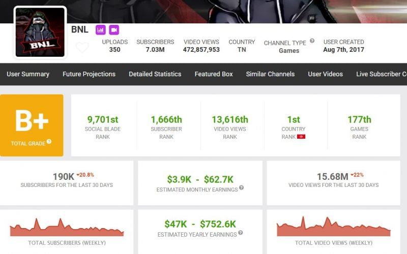 OP BNL’s monthly YouTube income reportedly ranges from $3.9k to $62.7k. His channel ranks 1st in his country when it comes to the number of YouTube subscribers. (Source: Social Blade)