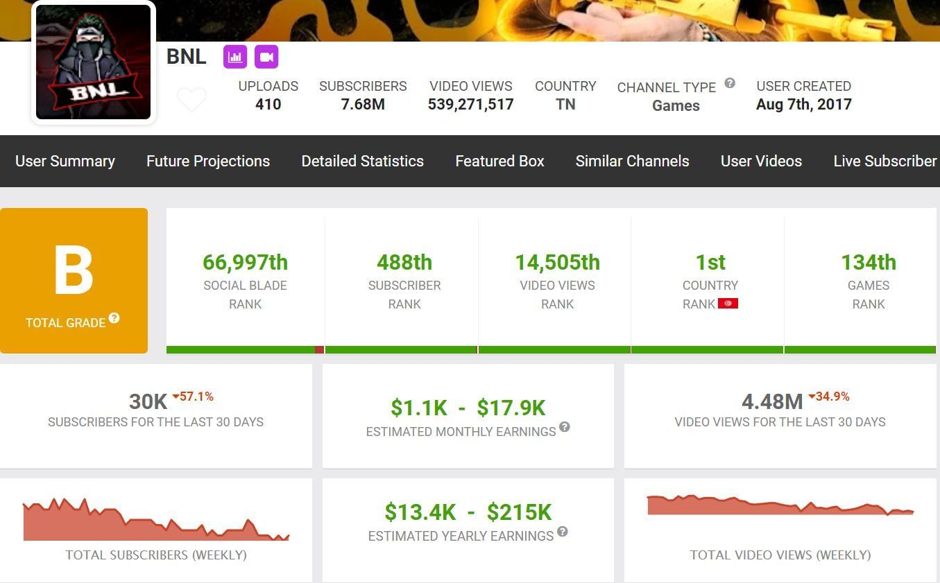 Players admire OP BNL for his incredible gameplay highlights. Even last month, despite having less than 10 uploads, he posted massive numbers. Oussema's subscriber count and video views have increased by 30k and by 4.48 million respectively.