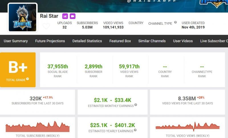 Raistar ranks 2899th in India when it comes to YouTube subscriber count.