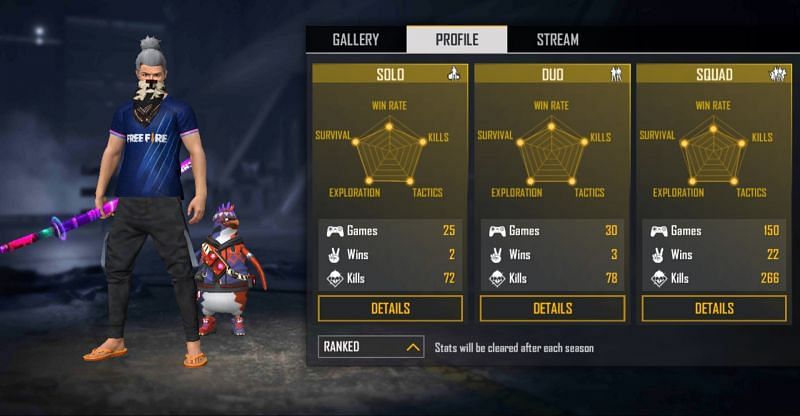 The Indian content creator has also played 30 ranked duo games and has secured 3 victories, making his win rate 10%. He has 78 frags to his name in this mode, with a K/D ratio of 2.89.