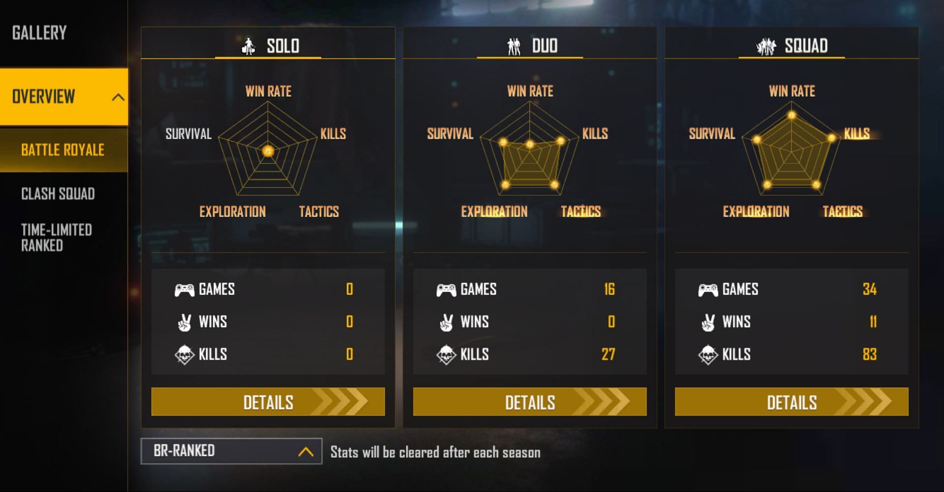 When looking at the 34 ranked squad matches Skylord has participated in since the start of the season, his win percentage stands at 32.35%, with 11 victories. He has accumulated 83 kills throughout these games, adding to a kill-to-death ratio of 3.61.