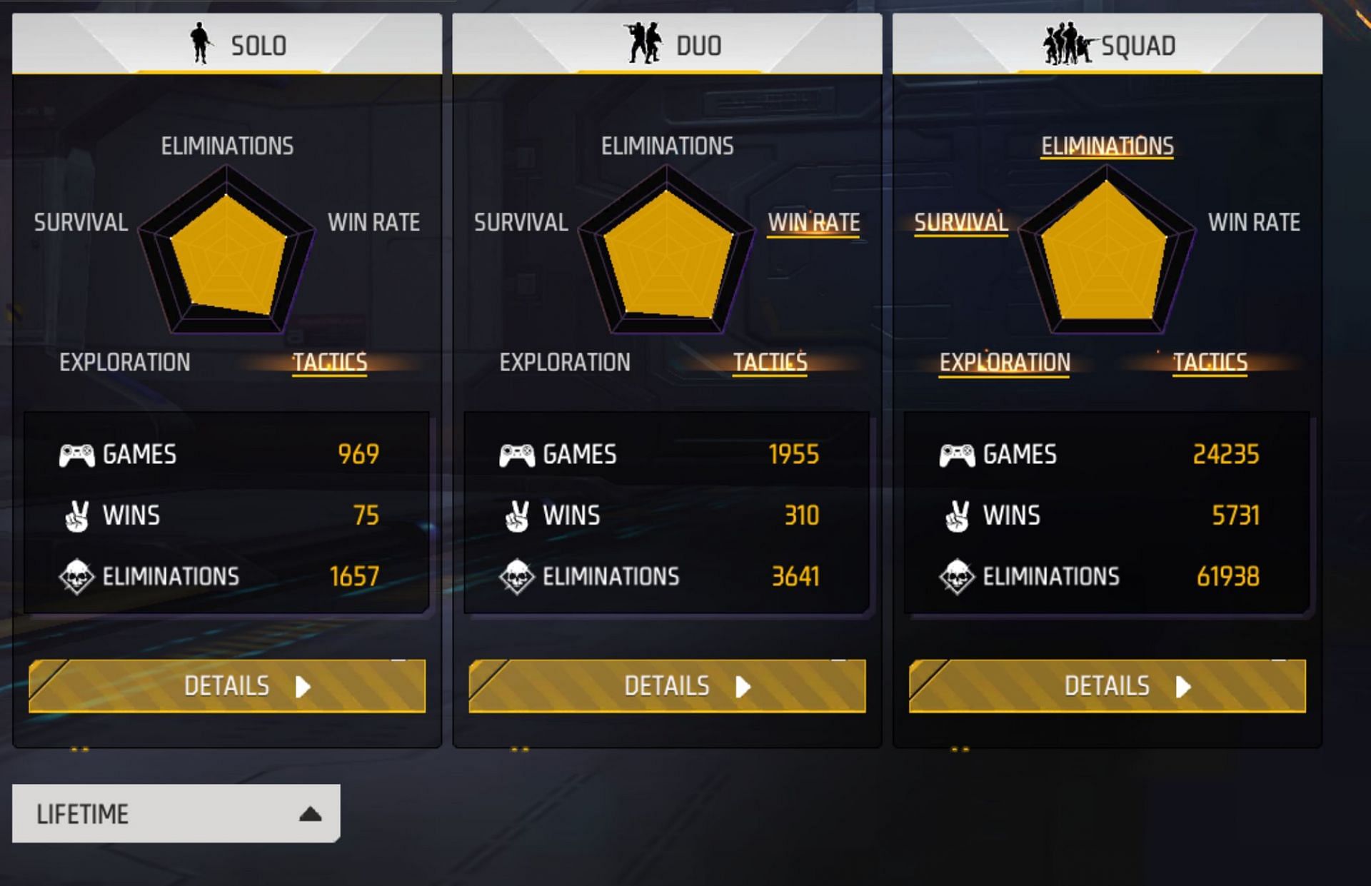 The content creator has played 969 solo matches and chalked up 75 first places to register a win rate of 7.73%. With 1657 eliminations to her name, she has bagged 452 headshots with a K/D ratio of 1.85 and a headshot percentage of 27.28%.