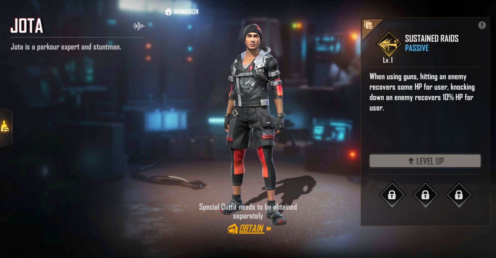 While utilizing guns, users will recover some health once they hit an enemy. Jota’s ability in Free Fire also recovers 10% of HP if individuals manage to knock down their respective foes.