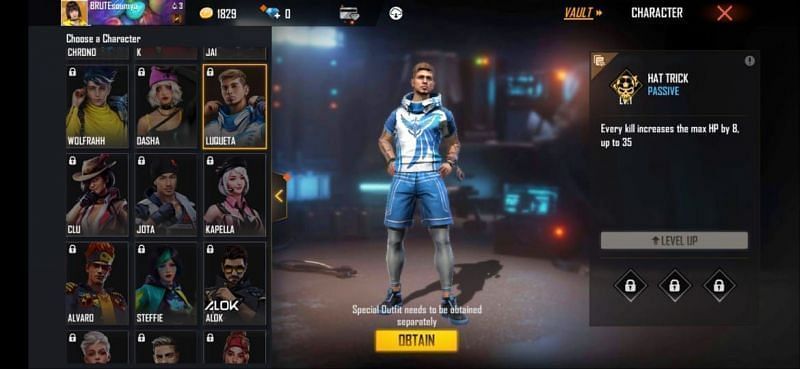 Luqueta is a passive Free Fire character who possesses an ability called Hat Trick. It helps in recovering HP after players eliminate their opponents.