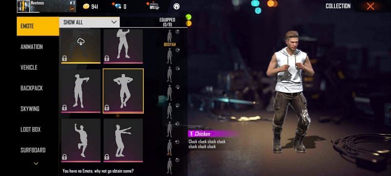 The Chicken is one of the goofiest and rarest emotes in Free Fire. Since it was present from the initial days of the game, not many players have it. It was given out to players who had the Elite Pass in season 7. This makes Chicken one of the rarest emotes in Free Fire.