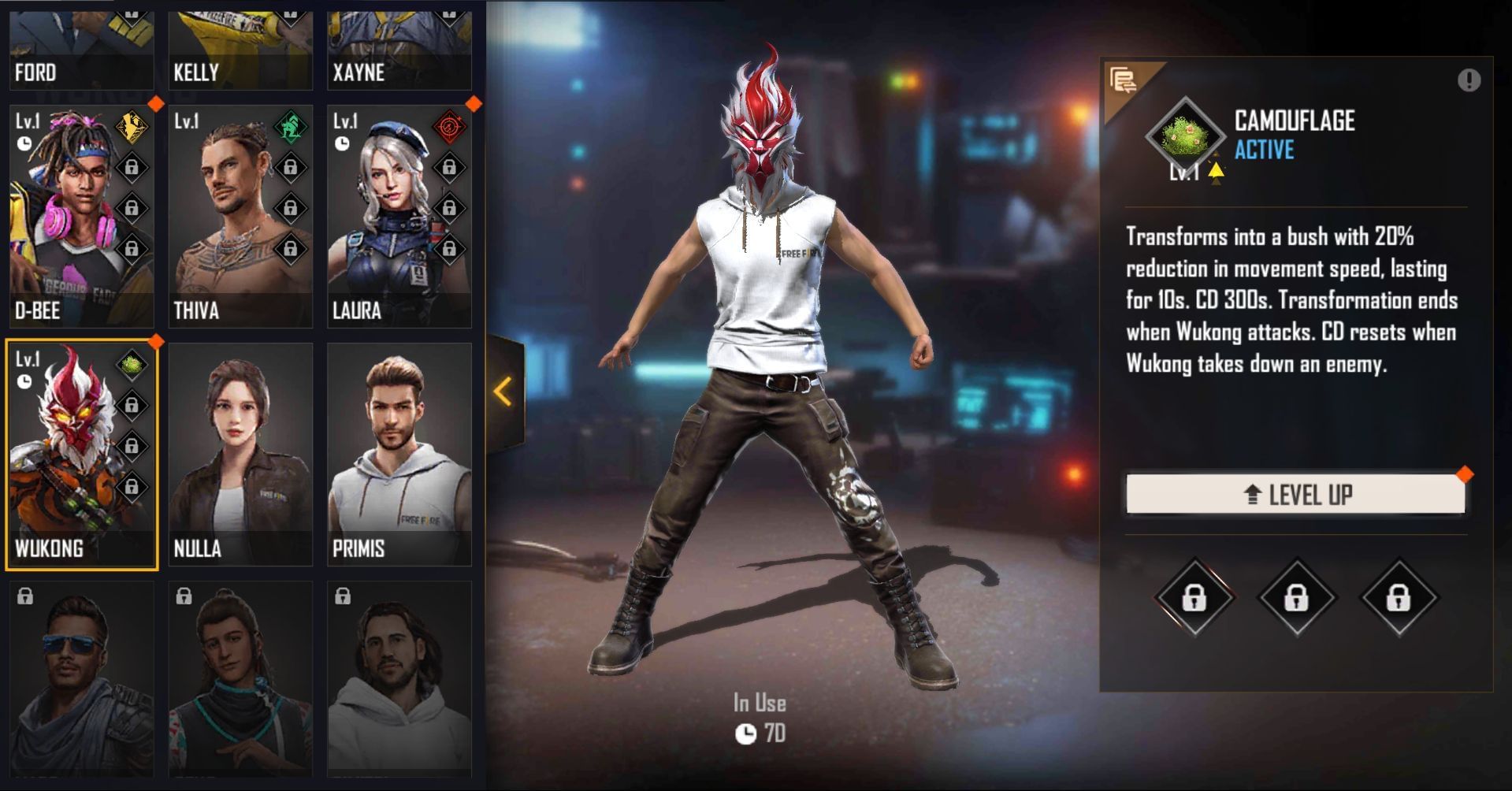 Wukong is incredible for aggressive gameplay, and Camouflage transforms users into a bush with 20% lower movement speed for 10 seconds. This ends when users attack a foe. There’s a cooldown time of 300 seconds; however, there’s a catch, i.e., it gets reset when they take down an enemy.