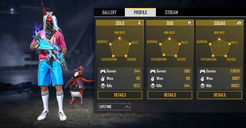 Lastly, in the 544 solo matches, the content creator has remained undefeated in 119 games, translating to a win rate of 21.87%. He has 1923 frags in these matches, maintaining a K/D ratio of 4.52.