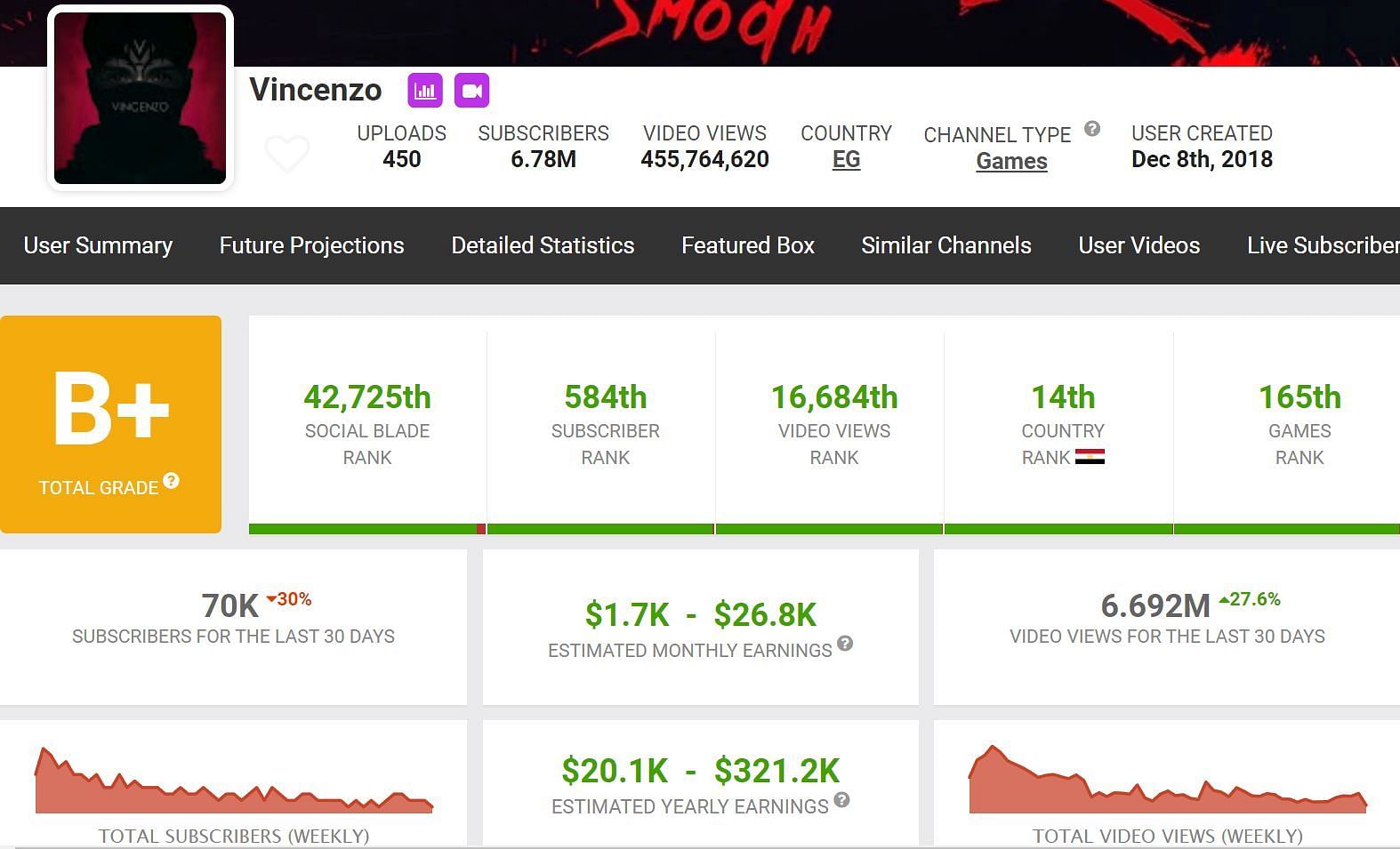 Within the previous 30 days, as per Social Blade, Vincenzo has gained 70 thousand subscribers and 6.692 million views.