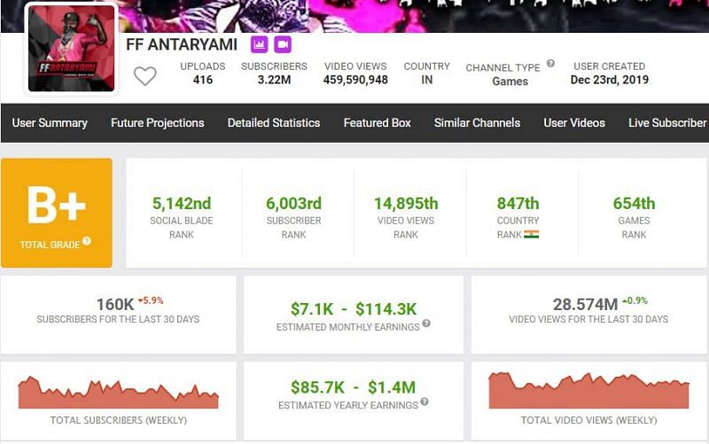 According to Social Blade, FF Antaryami's monthly earnings from his YouTube channel are between $7.1K and $114.3K. Meanwhile, his annual income is estimated to be between $85.7K and $1.4M.