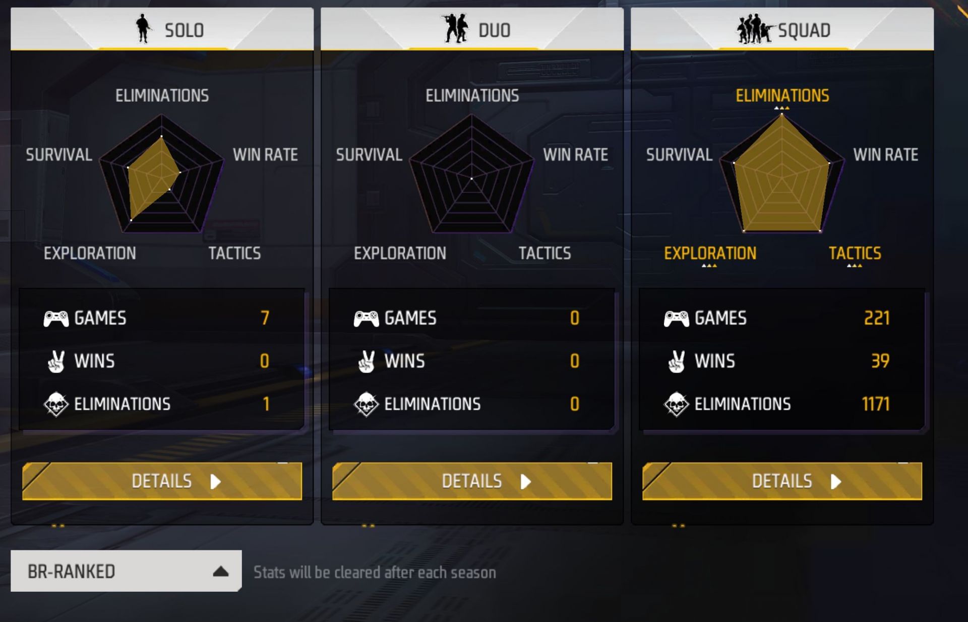 Finally, the Bangladeshi star has featured in 221 squad games and has come out on top in 39 of them, translating to a win percentage of 17.64%. At a K/D ratio of 6.43 and a headshot percentage of 52.69%, he has 1171 kills and 617 headshots.