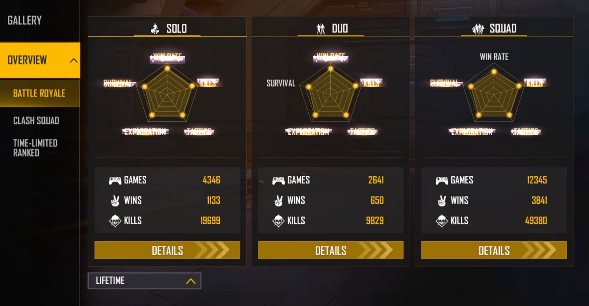 Lifetime stats