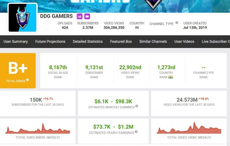 According to Social Blade, DDG Gamers’ estimated monthly earnings from his channel lie between $6.1k - $98.3k.