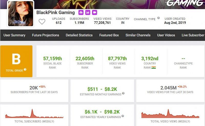 According to Social Blade, MissDiya is estimated to earn around $511 - $8.2K per month from the BlackPink Gaming YouTube channel every month. The expected income for a year is in the range of $6.1K - $98.2K.
