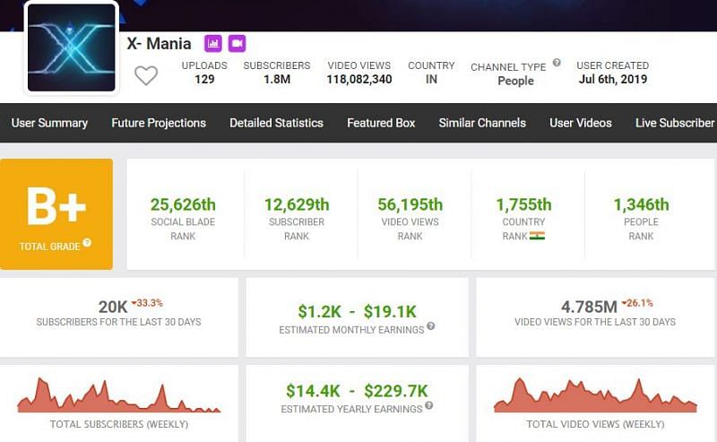 As per Social Blade, X-Mania is expected to earn between $1.2K and $19.1K per month from this YouTube channel. In the meantime, his yearly income is approximately $14.4K to $229.7K.
