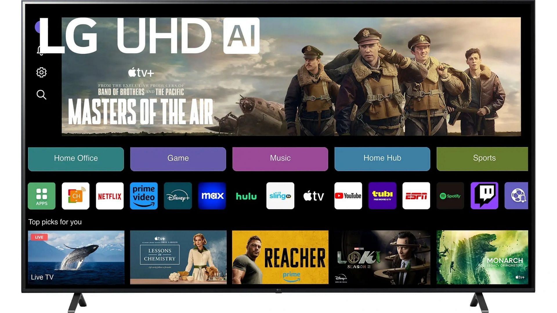 The LG UT75 delivers sharp and crisp visuals, thanks to the large 4K panel. Even non-4K content looks great on this screen. The sound is also great and is loud enough for everyone in the living room to hear properly. It comes with support for streaming games and has free channels built into it. All in all, this is a great television and has everything a smart TV should.