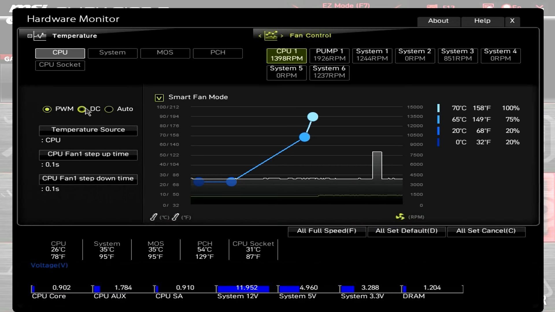 If the CPU or case fans run at full speeds for longer durations, the bearings will wear out quickly. So, if you set a fan curve, you can greatly improve the fan's lifespan and noise levels. Set the fans to run at 60% speed if the CPU temperature is below 50°.