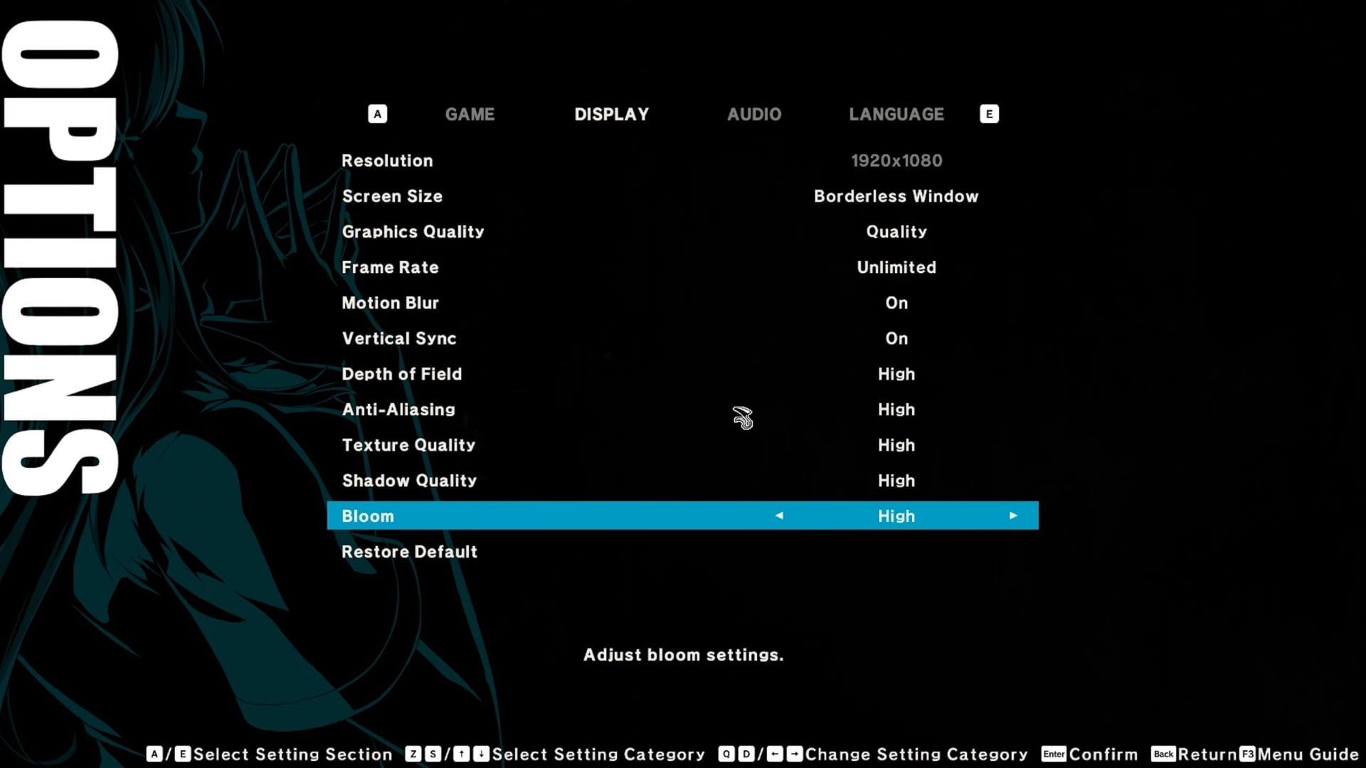 Note: The settings provided below are based on the recommended system requirements of BLEACH Rebirth of Souls and shouldn't be used for resolutions higher than 1920x1080.