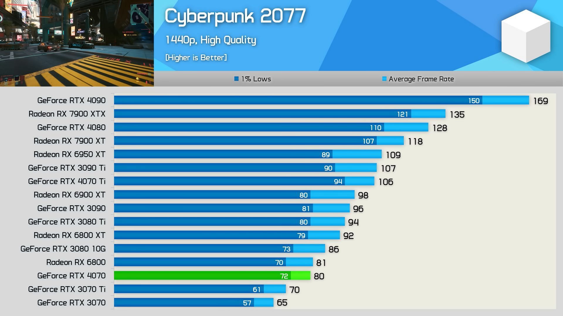 Here, the RTX 4070 is running games at 1440p with "Very High/Ultra" settings.