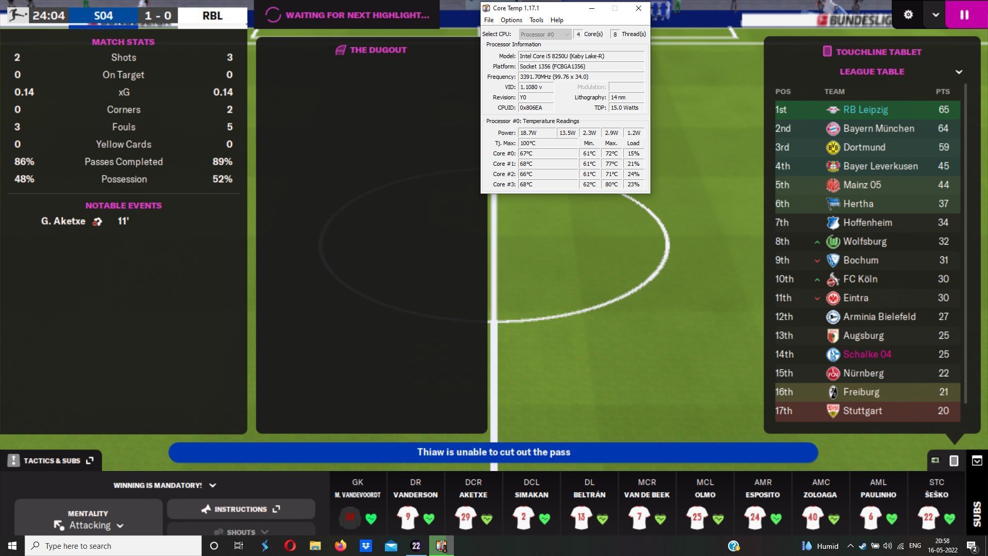 The test was done on an i5-8520U with 8 GB of DDR3 RAM. It has a separate GPU in 2 GB of Nvidia MX 110, an extreme entry-level card. With such limited capabilities, I decided to test it on Football Manager 2022.