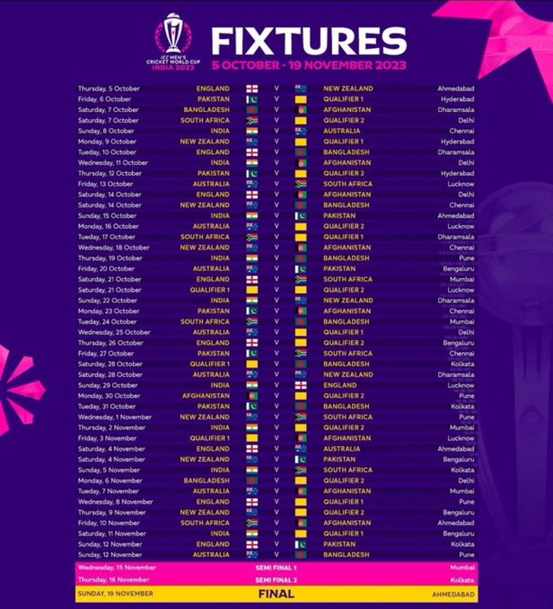 ICC ODI World Cup 2023 Schedule, Match date and Timings