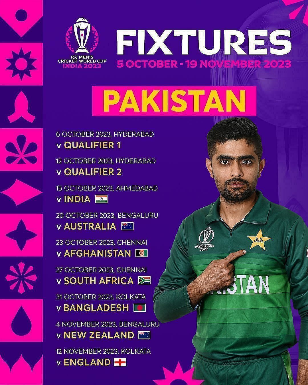 | October 06, 2023 | Pakistan v Netherlands | 02:00 PM | Rajiv Gandhi International Stadium, Hyderabad |