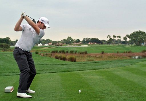 Branden Grace of South Africa plays his tee shot on the 18th hole during the first round of the Honda Classic on February 28, 2013 in Palm Beach Gardens, Florida.