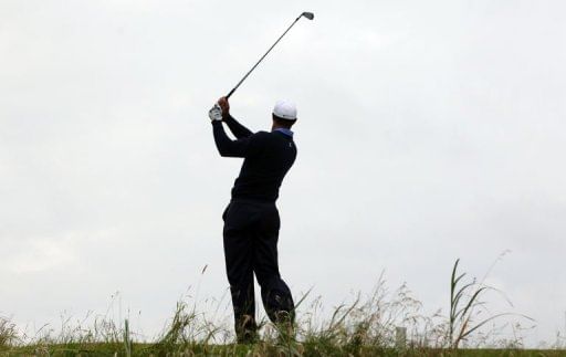 Tiger Woods of US watches his tee shot at the fourth at Royal Lytham and St Annes in Lytham, north-west England, ahead of the 2012 British Open Golf Championship which begins on July 19.