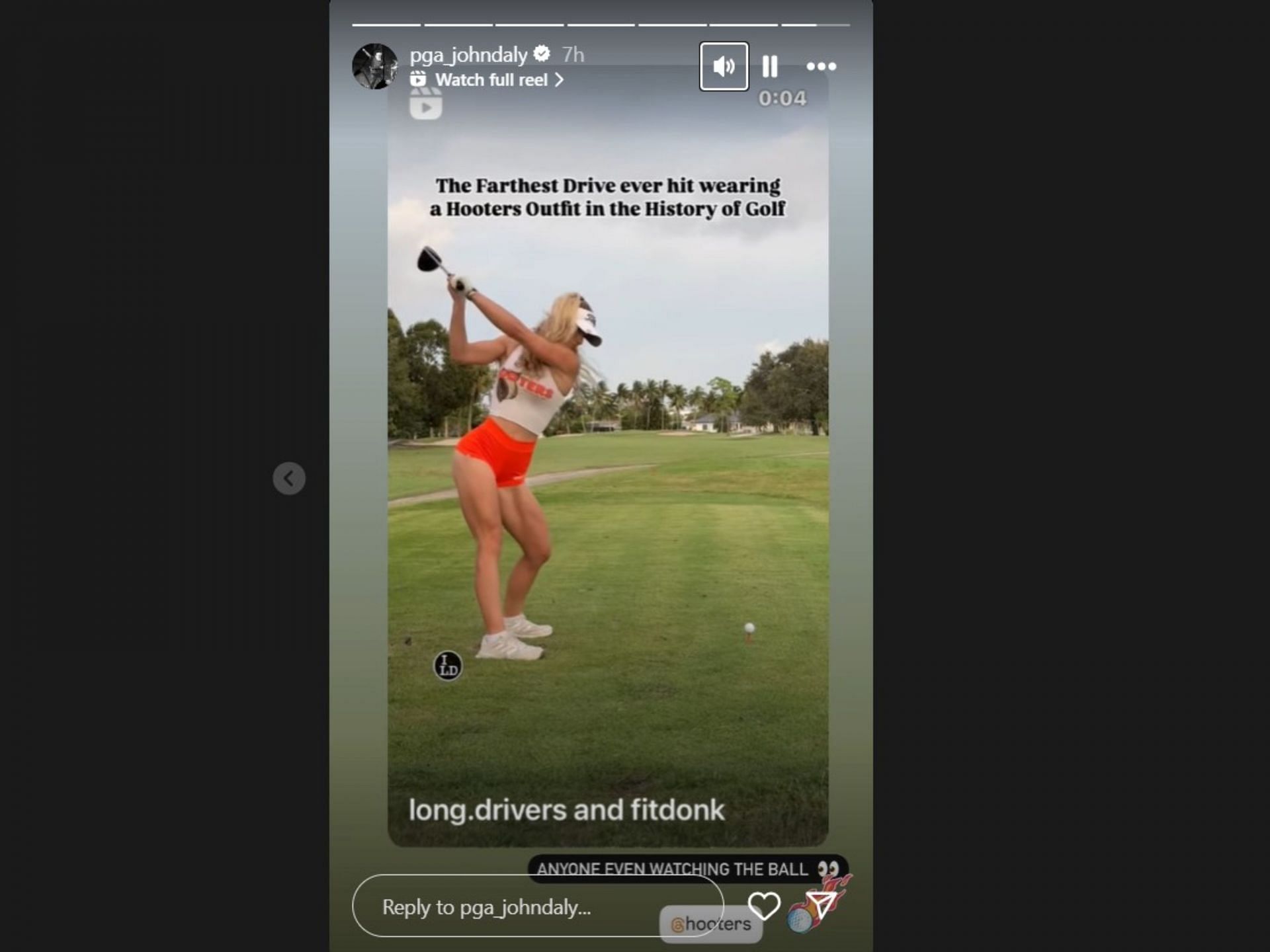 John Daly recently shared a video on Instagram titled "farthest drive ever hit in a Hooters outfit." Alongside the post, he included a humorous caption, joking that no one was watching the swing.