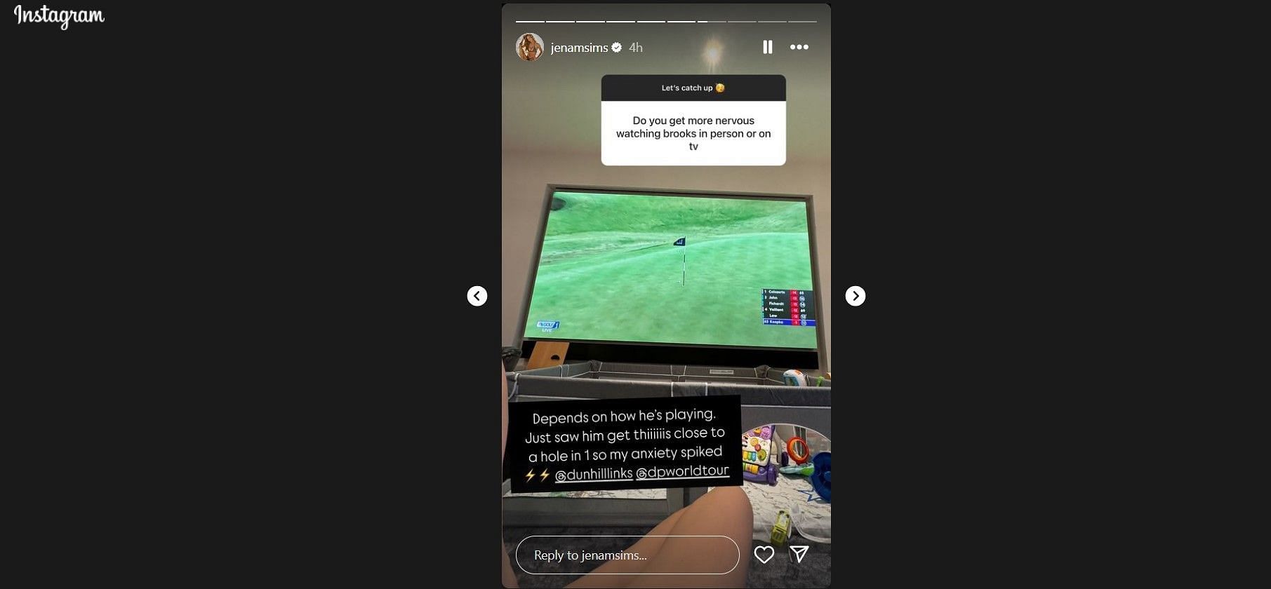 Jena Sims shared a picture of her TV screen to answer the question. The ongoing Alfred Dunhill Links Championship was playing on the TV. She responded and gave an update on how she was feeling seeing Brooks Koepka play at the Kingsbarn Golf Links.