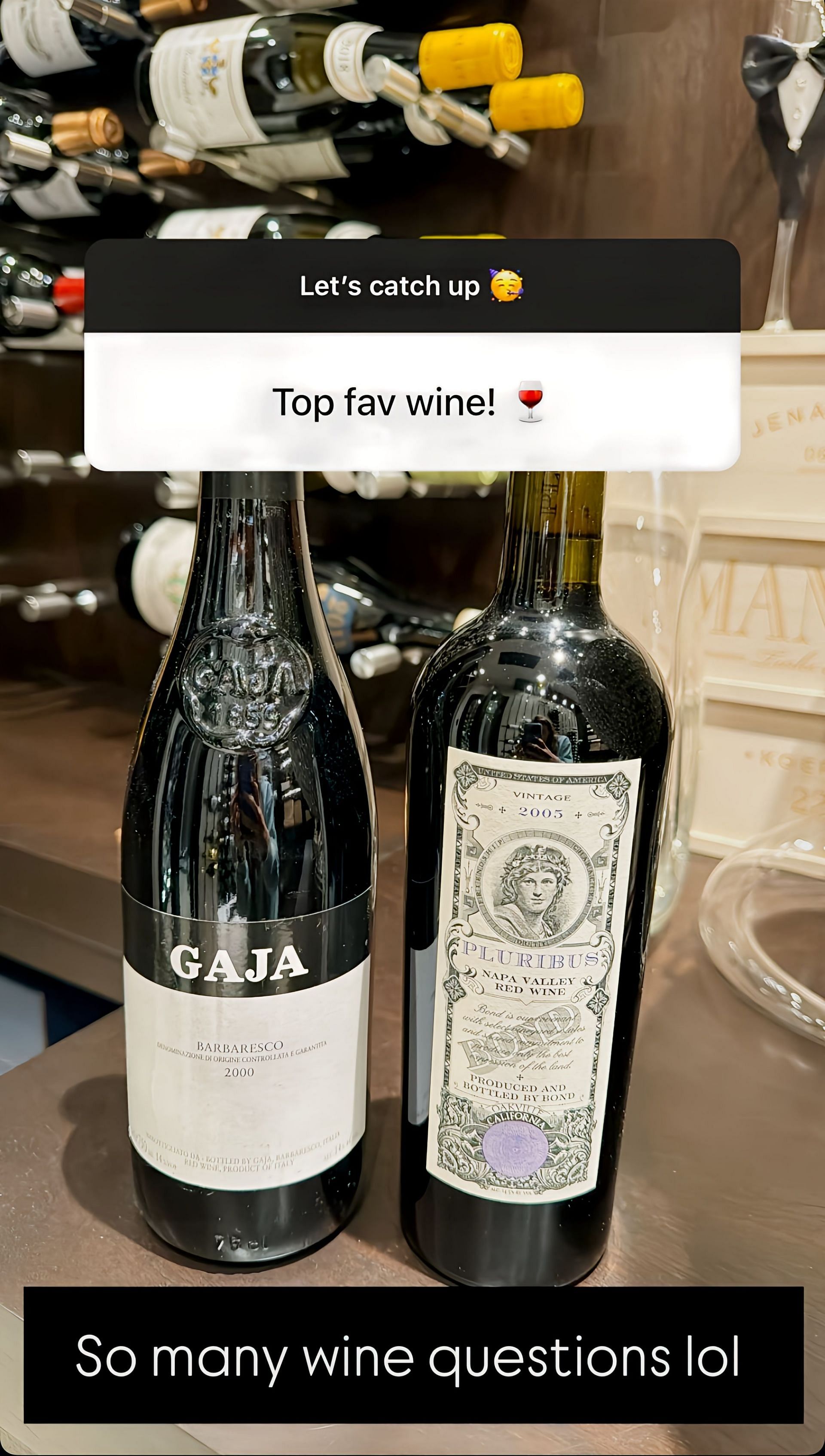 The 35-year-old model shared a picture of Pluribus wine and Gaja Barbaresco wine with the caption: