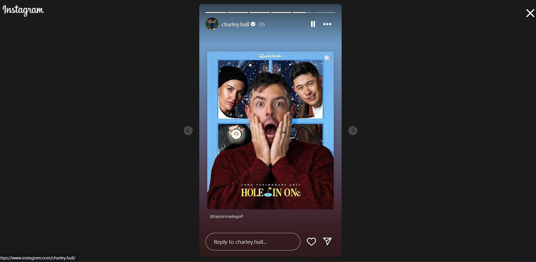 In the picture, fans could spot a movie-like poster made by the company as a part of their new promotional campaign. Hull is on the upper left, sporting a black headwear. McIlroy is right at the center of the image with a red sweater, reflecting the Christmas spirit perfectly. Collin Morikawa could also be spotted on the right side. Hull shared the post made by TaylorMade on her story: