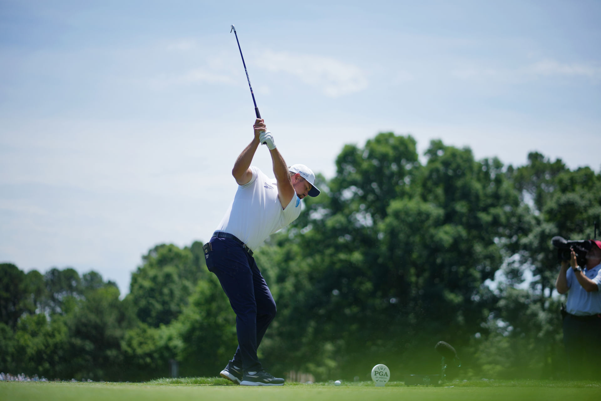On day three at Quail Hollow Club, Bryson DeChambeau shot three birdies on the front nine and two birdies on the back nine.