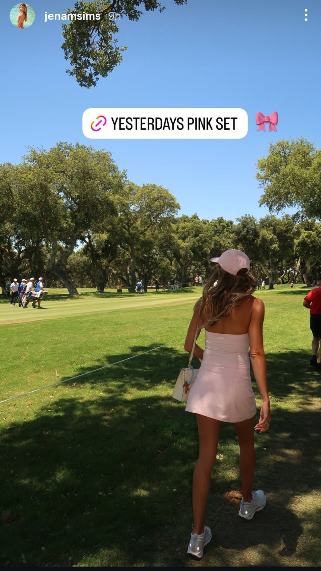 Jena Sims headed to Real Club Valderrama in all pink for the start of the LIV Golf event in Andalucia. The social media influencer compiled all the product links and shared them on her Instagram story for her fans.