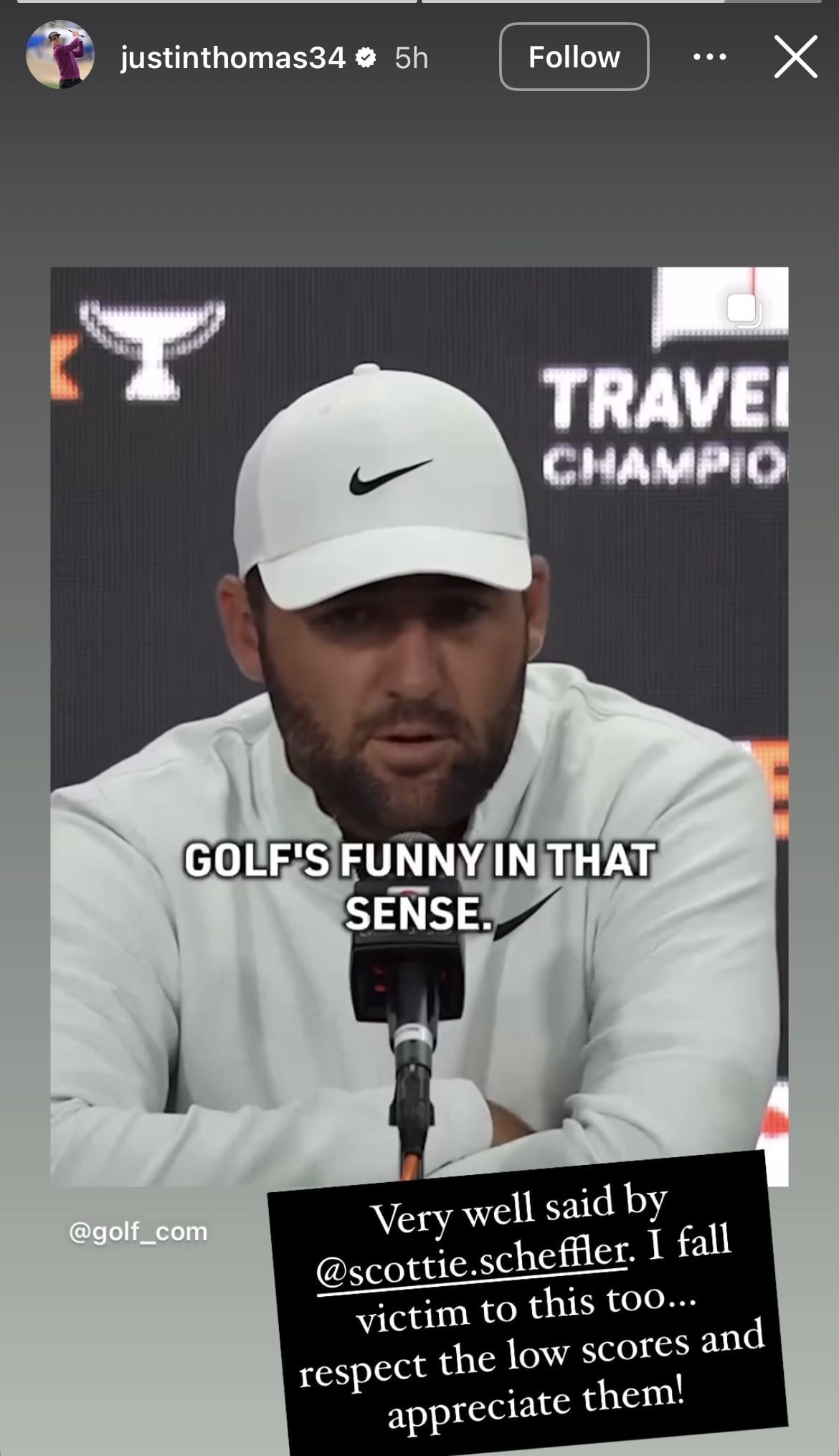 “Very well said by Scottie Scheffler. I fall victim to this too… Respect the low scores and appreciate them!”