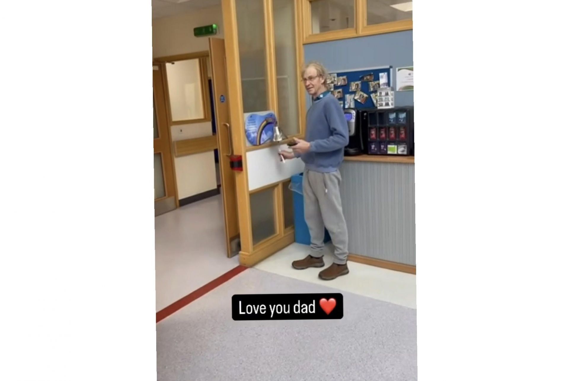 In the video, Hull's father can be seen ringing a bell similar to those that exist in many places for cancer patients when they defeat the disease.