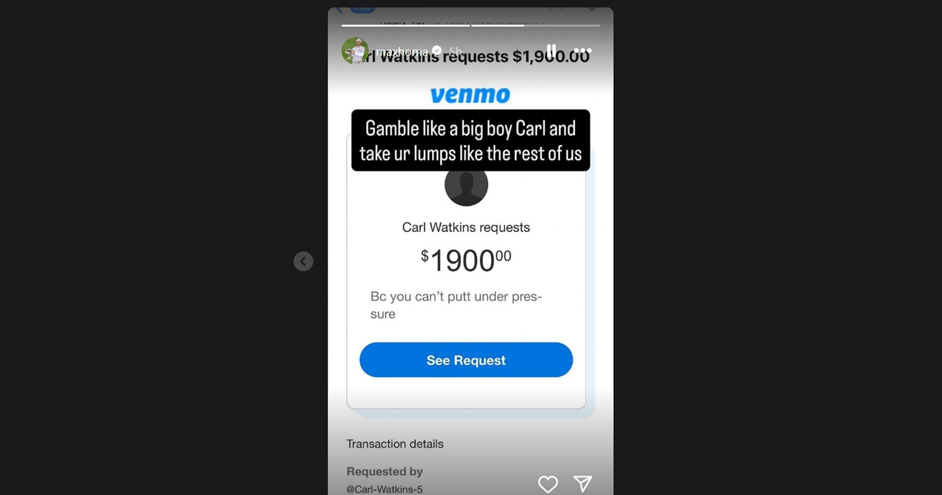 "Gamble like a big boy Carl and take ur lumps like the rest of us," Homa wrote in the IG story.