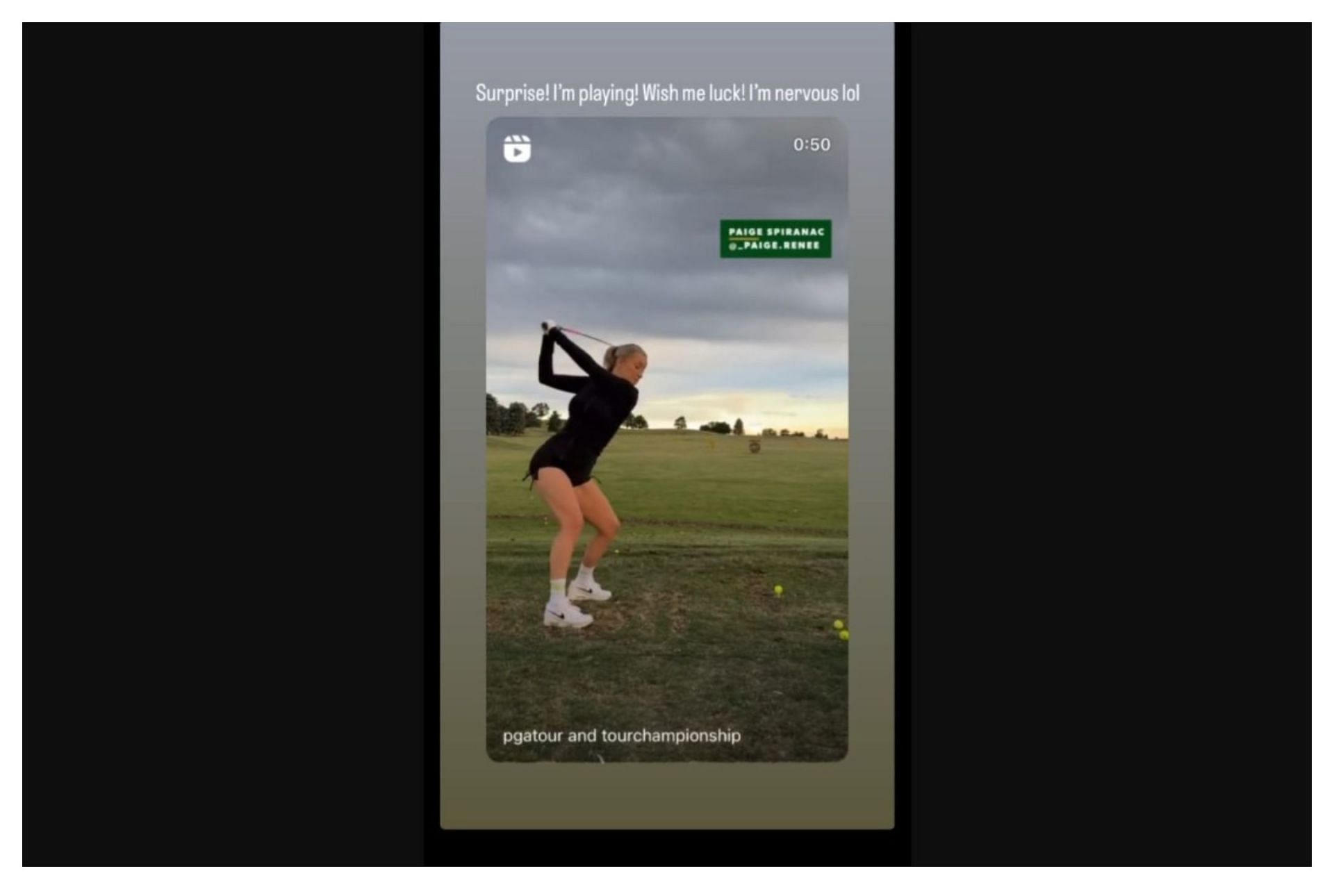 On Tuesday, August 13, the PGA Tour released the 16-player field for the Creator Classic, featuring Wesley Bryan, Dude Perfect, Garrett Clark, Fat Perez of Bob Does Sports, and others. Spiranac, who is part of the field, reposted the PGA Tour's announcement on her Instagram story.
