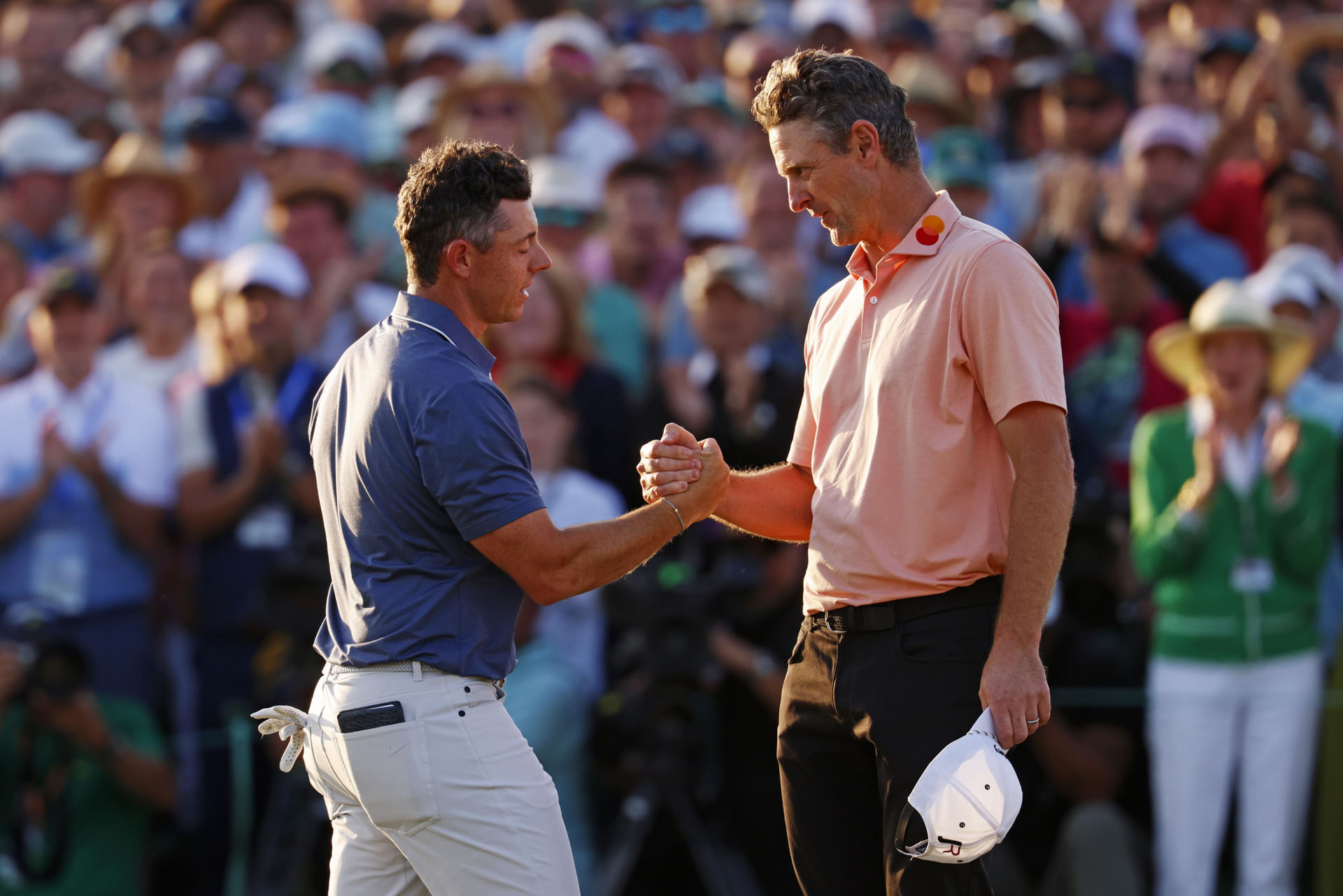 "He's a great champion. He has displayed so much grace throughout his career. You know, selfishly, I was happy that it was another Euro in the playoff. We're on a good run at the minute. We're Ryder Cup year and all that. But yeah, you know, Justin is a great champion,"