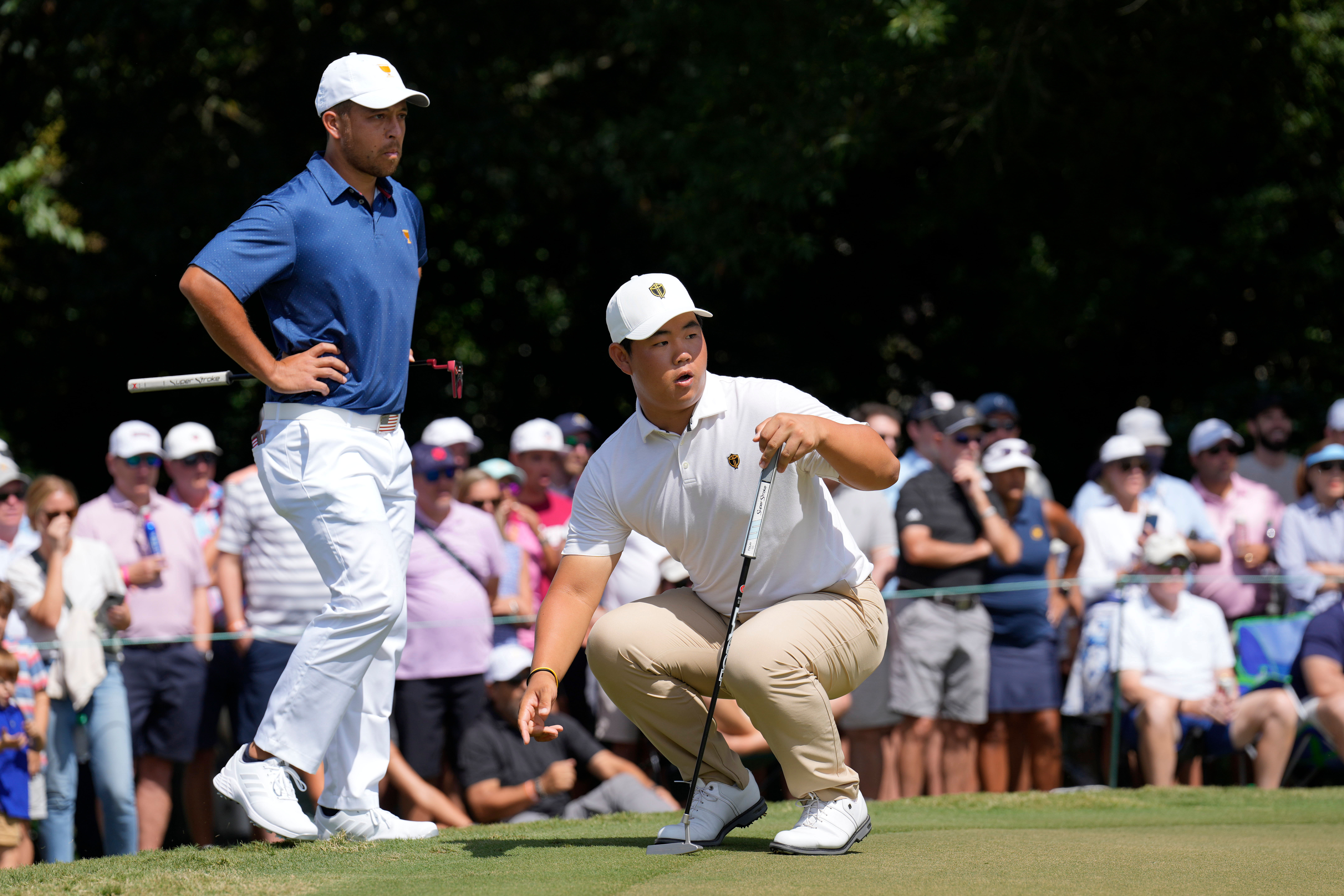 Tom Kim silently protested against Xander Schauffele and Patrick Cantlay after the duo didn't concede their putt the way they had during the previous hole at the 2024 Presidents Cup. Kim laid down his putt between the ball and the hole to highlight the proximity but the US pair had already begun their way to the next hole and didn't see Kim's supposed act of dissent.