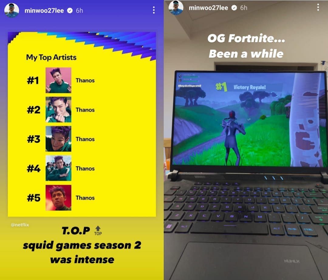Along with that, Woo Lee also posted another picture sharing his review of the popular newly released second season of Squid Game. He reshared a picture of Netflix, in which the giant streaming platform created a top artist’s pick. The list includes all the top-5 picks topped by Squid Game's Thanos.