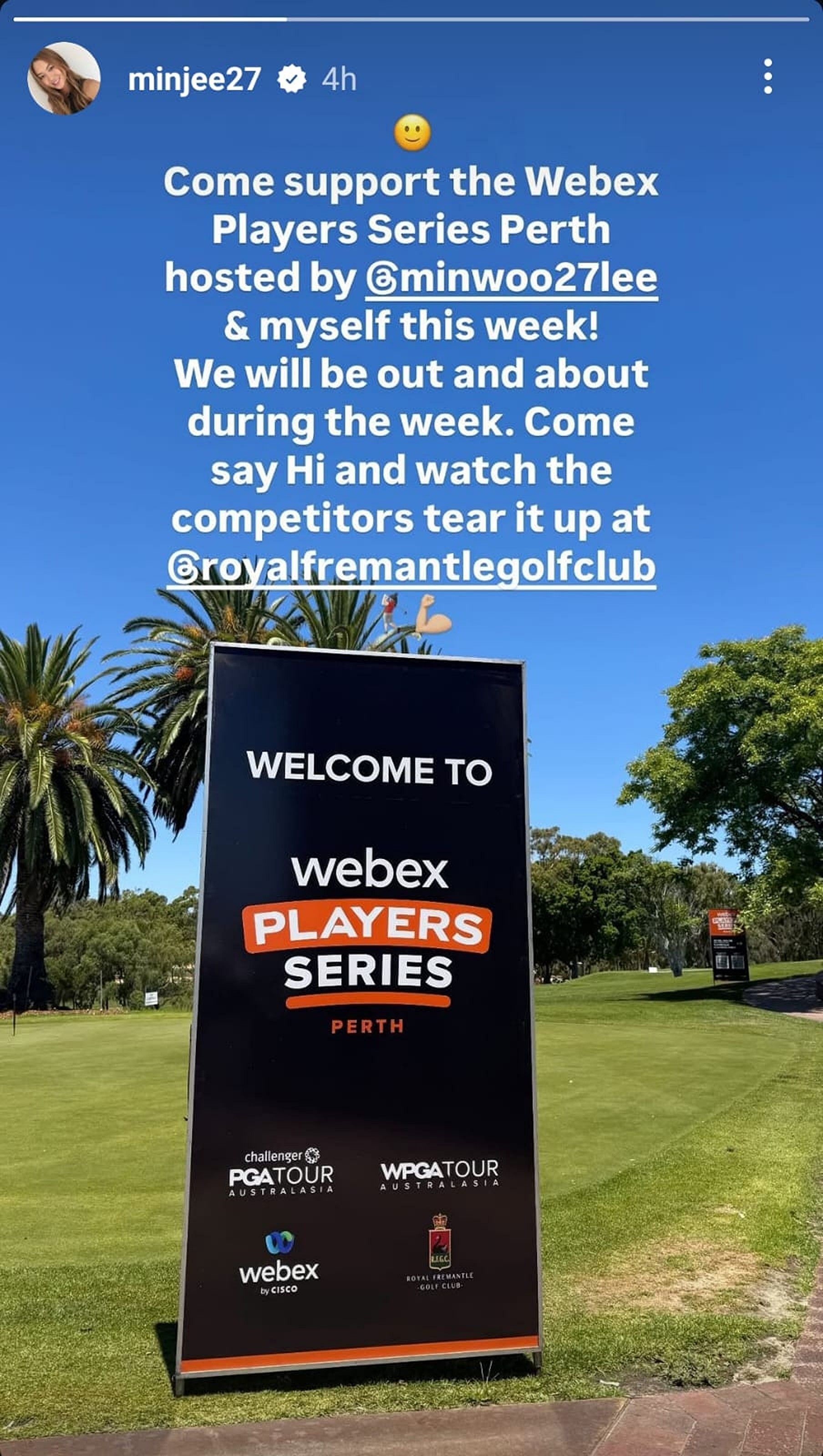 "Come support the Webex Players Series Perth hosted by @minwoolee27 & myself this week! We will be out and about during the week. Come say Hi and watch the competitors tear it up at @royalfremantlegolfclub."