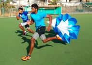 Navaneeth Shanta, Wide Receiver, Bangalore Warhawks (foreground) in a sprint with Roshan Lobo, Running Back, Bangalore Warhawks in training