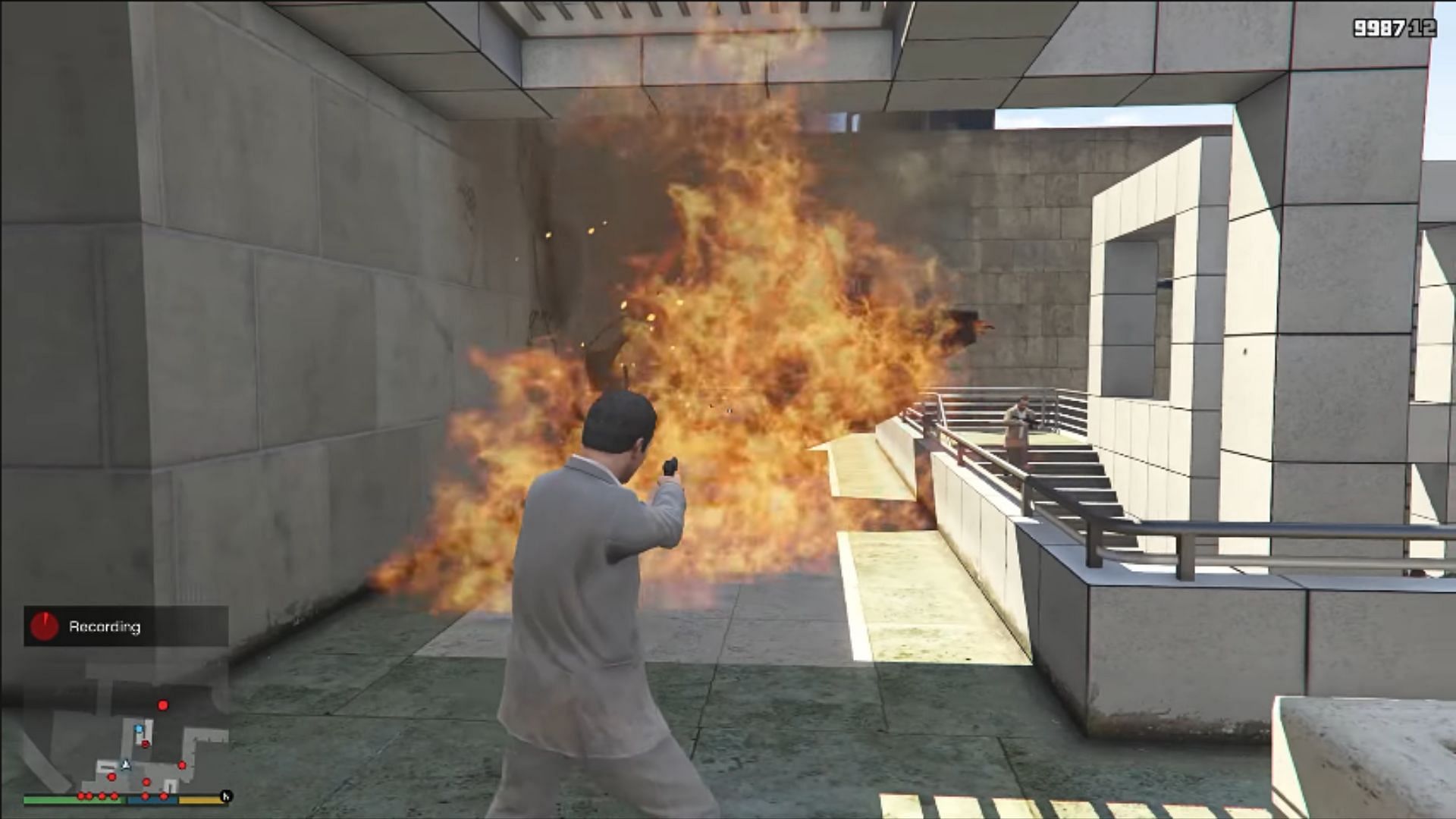 During the story mode mission, The Wrap Up, a helicopter crashes into the Kortz Center, starting a fire at the spot. While usual fires deal damage progressively, this one can kill the protagonist instantly.