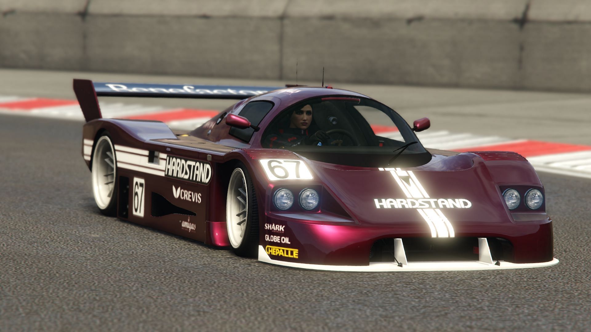 The Benefactor LM87 is a one-seater endurance race car categorized as a supercar in GTA Online. Like the SM722, it debuted in 2022 with The Criminal Enterprises update. This car takes design cues from the real-life Sauber Mercedes C9 and Mercedes-Benz C11.