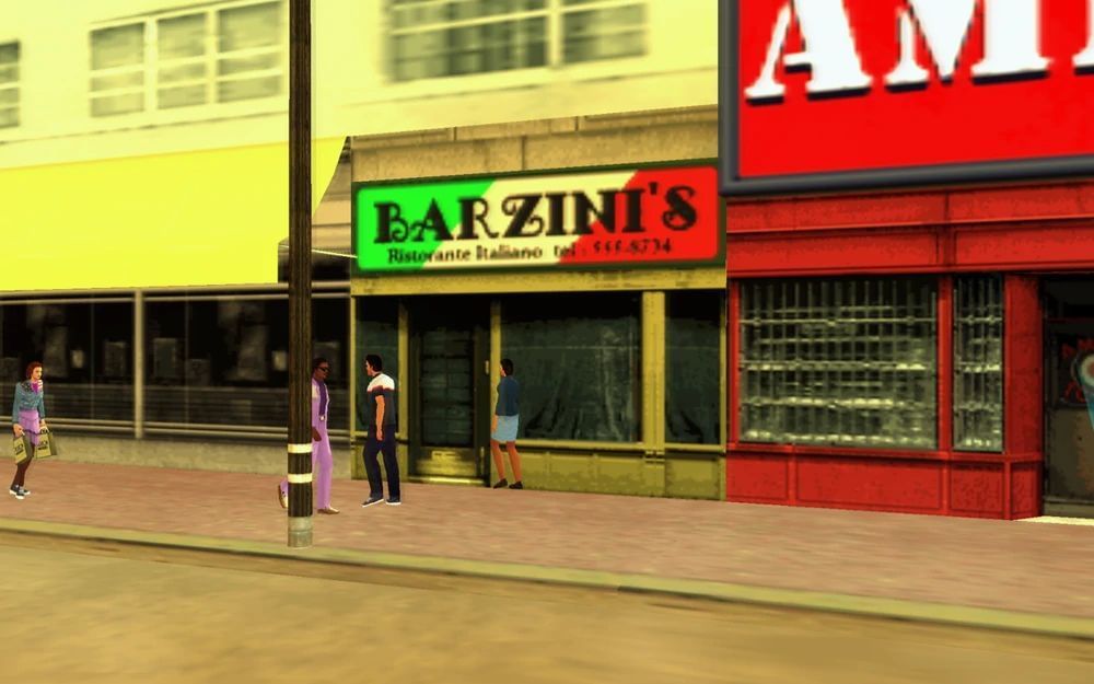 The Barzini Italian restaurant in Vice City Stories is named after a character from The Godfather. Don Emilio Barzini appears as one of the mafia bosses in New York and the main antagonist. There are two such references in the game, one in Downtown Vice City and another in the North Point Mall.
