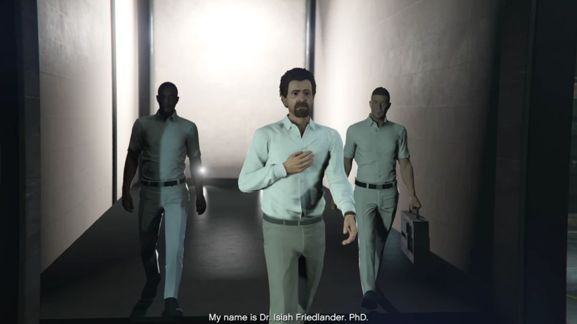Isiah Friedlander is a minor villain in Grand Theft Auto 5 Story Mode, who later emerges as one of the major GTA antagonists in the Los Santos Drug Wars DLC. He is a therapist who asks many weird questions and also gives witty remarks to his clients.