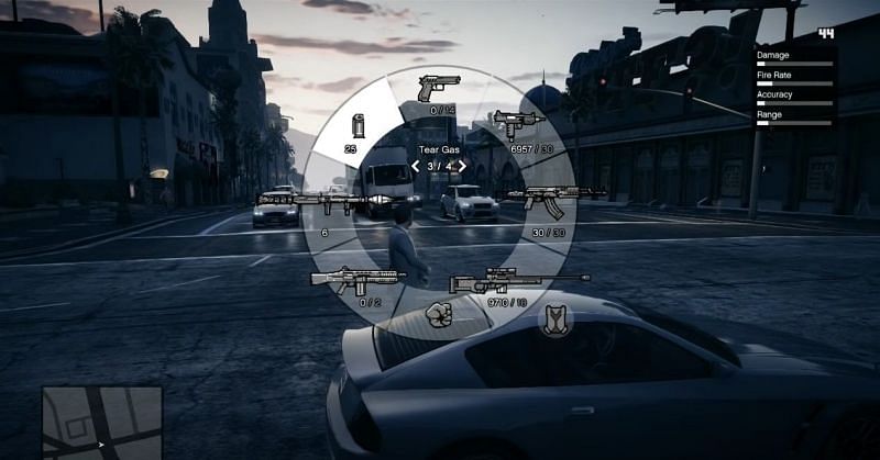 GTA 5 is the first GTA game to have a weapon wheel in all versions of the game. It's a highly convenient way for players to choose a weapon amid a battle. In previous GTA games, one had to manually cycle to the weapon they wanted.