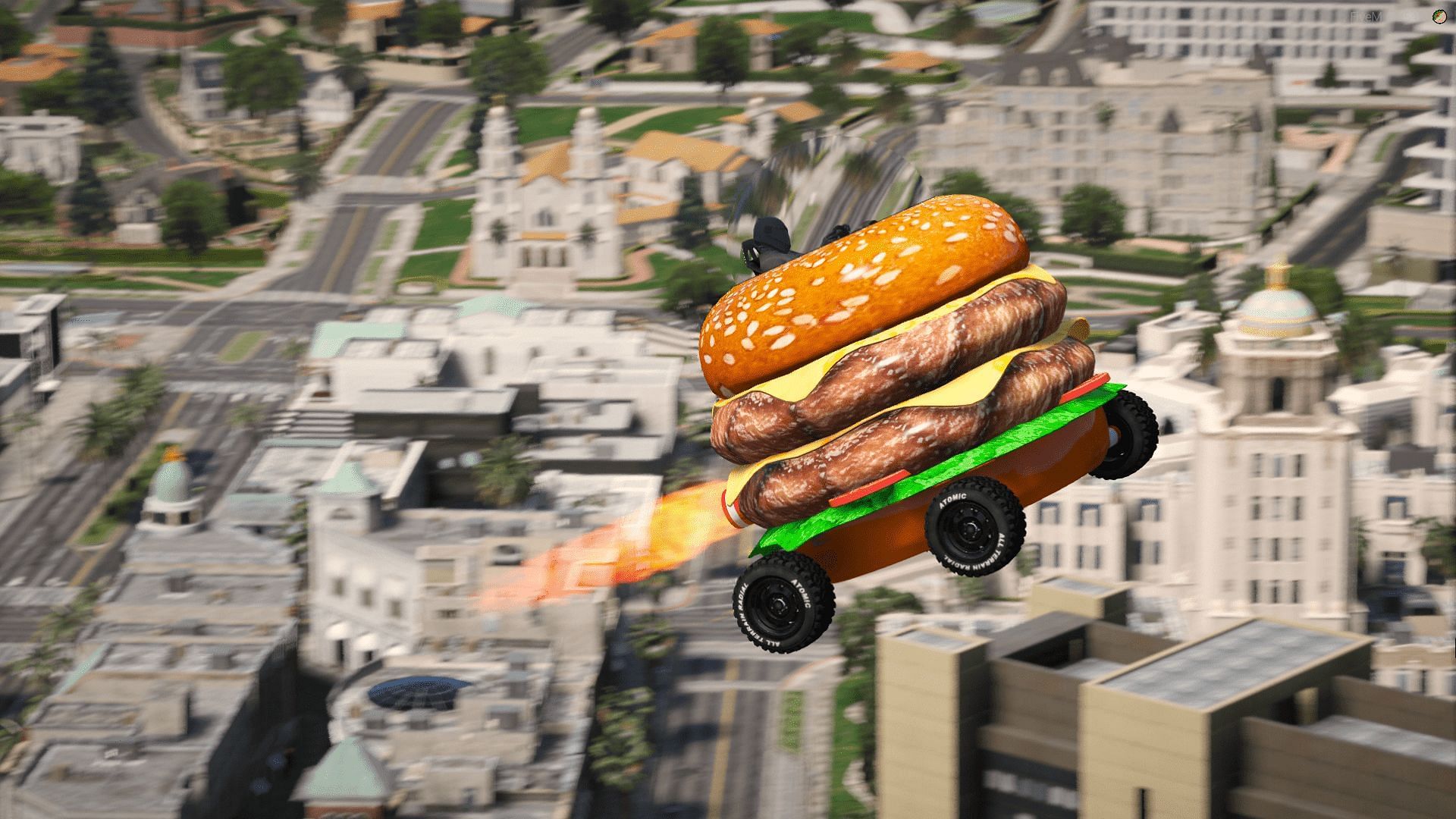 A driveable burger is as awesome as it sounds. It's fast and can even jump like the Scramjet; what's not to love about it? There have been past modifications similar to the Nagasaki Bleeder Wagon, but this one is still up-to-date.