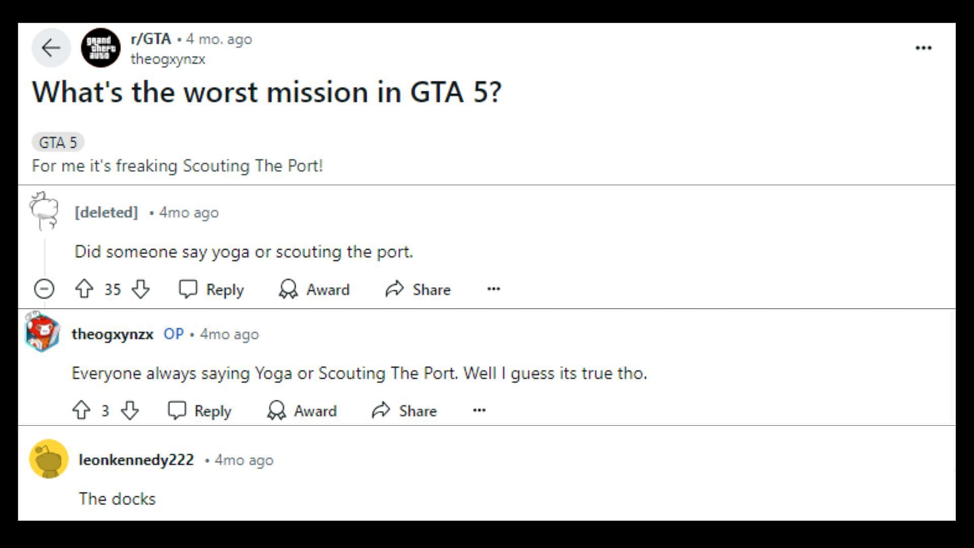 Scouting the Port is infamous as one of the most boring missions in GTA 5's story mode. Some may find it relaxing, but the lack of any engaging segments and having to operate equipment at the docks is far from an ideal Grand Theft Auto experience.