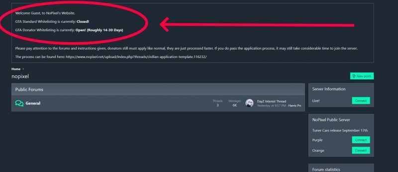 GTA RP players need to register for an account and apply in the appropriate section of the forums. Standard whitelisting is closed right now, but the donator whitelisting section is available. As the name implies, players who donate more are more likely to have their applications looked at and approved.
